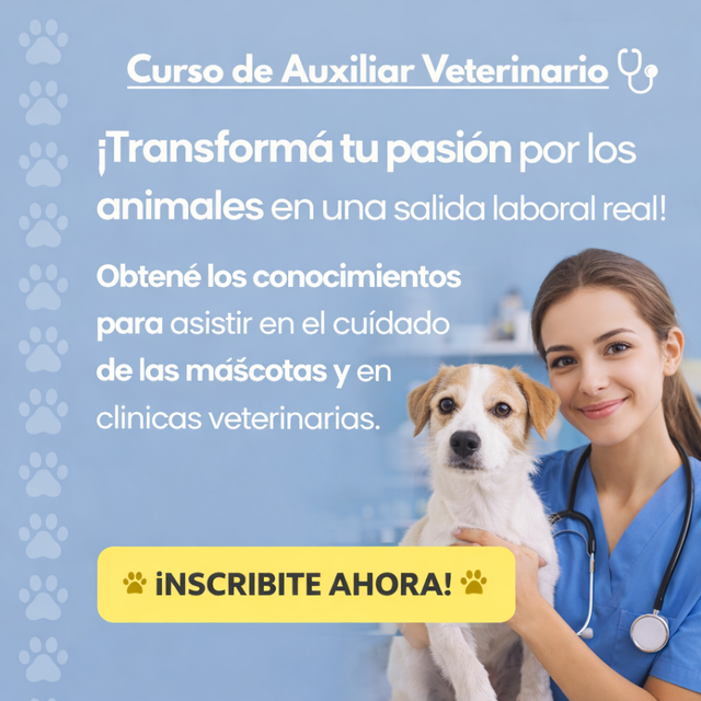 Formate para trabajar con animales y dar tus primeros pasos en el ámbito veterinario. Este curso 100% online te brinda los conocimientos esenciales para asistir al veterinario, actuar ante urgencias y comprender el manejo clínico básico.